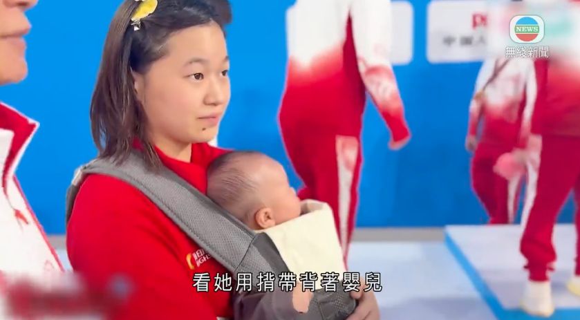 不過她近日肩負起一個「重任」,在全運會期間,不時幫「師兄」照顧幾個月大的嬰兒,看她用揹帶背著嬰兒姿勢「有板有眼」,抱嬰兒手勢亦非常熟練,因而被內地傳媒笑稱她為「紅姨」。