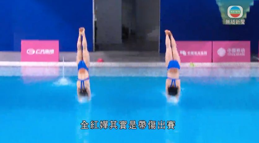 廣東跳水隊教練何威儀指出:「全紅嬋現在的脛骨、踝關節,都是受傷的,在堅持比賽,大家看不出來的,她是很艱難、很艱難,每天都是疼得不得了,敷完冰再跳、敷完冰再跳。」