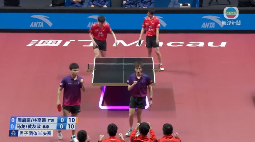 乒乓男團四強,馬龍及王楚欽壓陣的北京,直落三場淘汰廣東,晉身決賽。
