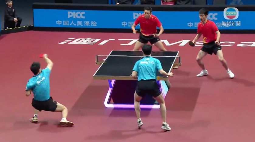 之後上演男單四強「翻版」,紅衫的樊振東,早段被王楚欽招牌側身,拉贏這一板,首局輸8-11。王楚欽復仇戰領先一局,但樊振東很快回勇,這位男單金牌得主瞄著反手位,連拉四板,樊振東連贏11-7、11-3及11-9,局數反勝3-1,為上海追平場數。