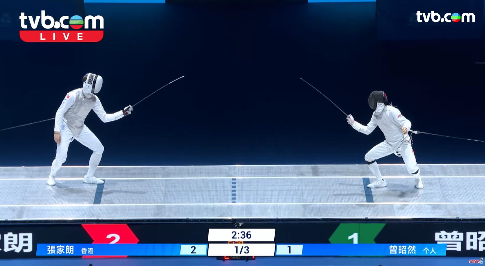 張家朗在全運男子花劍個人賽中,對福建的許杰時落敗,轉戰銅牌戰。之後在銅牌戰中,張家朗對戰個人名義參賽的曾昭然,成功奪得銅牌!