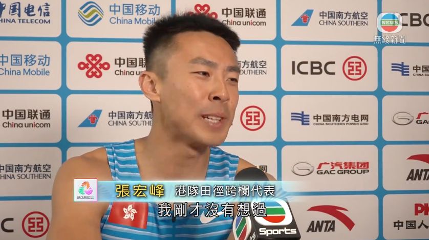 港隊田徑跨欄代表張宏峰稱:「我剛才沒有想過能否破(香港紀錄),做好要做的事,要有的就會有。入決賽未必是我在這項賽事第一樣會想的事,都是順其自然做好,做到個人最佳成績就做到。」