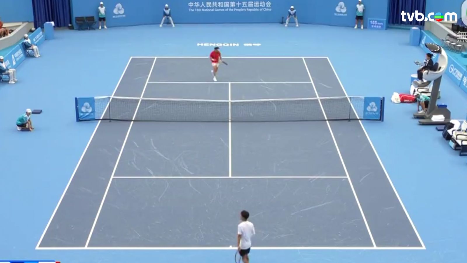 港隊網球代表黃澤林來到珠海首戰全運,這位紅衫的港將,男單首圈對山西的段皓,完美演繹何謂「發球機器」,快狠準。第一發球得分率九成二,第二發球得分率九成一,令對手全場未試過創出「破發分」。