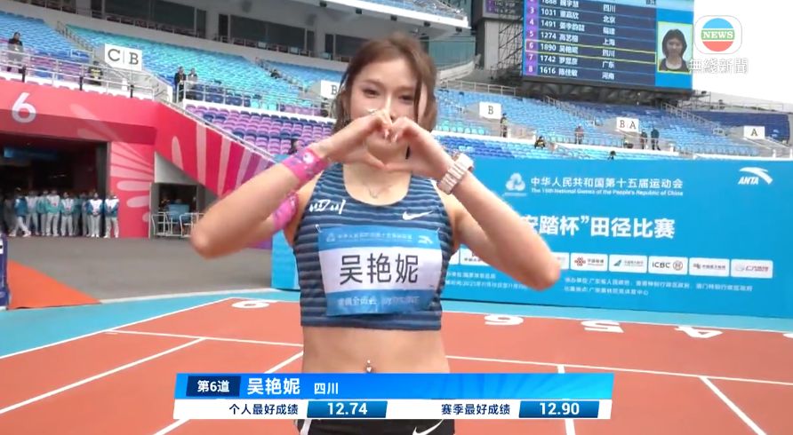 全運會跨欄|四川吳艷妮女子100米跨欄成焦點 預賽成功首名晉級點讚分享撰文:打邊爐 發佈日期:2025-11-19 05:09 更新日期:2025-11-19 05:18全運田徑女子100米跨欄,四川的吳艷妮預賽首名晉級。全運會跨欄|四川吳艷妮女子100米跨欄成焦點 預賽成功首名晉級女子100米欄三組預賽,吳艷妮壓軸登場,繼續成為焦點,她被編在第六線。每組首兩名出級,之後計成績,決賽餘下兩個決賽席位,吳艷妮由頭帶到尾,以12秒98首先過終點,亦是預賽唯一跑出13秒內的跑手。#吳艷妮#跨欄#全運會#全運會2025#第十五屆全國運動會