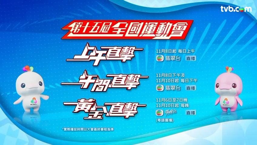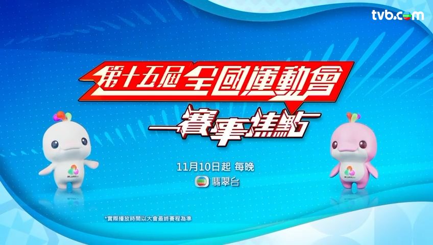 「TVB與你 延續全運精神」,「第十五屆全國運動會」將於11月9日(周日)晚隆重舉行開幕禮,TVB各大平台及頻道將全方位直擊「第十五屆全國運動會」盛事,與全城同步力撐港隊。