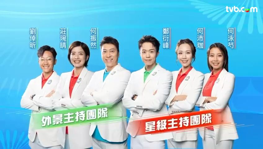 無綫還同步發布了全運會主持、評述團隊陣容名單及官方照,主持團隊成員有(排名不分先後):鍾志光、朱凱婷、洪松蔭、江忠德、貝可泓、鄭衍峰、何沛珈、何泳芍、何振然、莊婉晴及劉倬昕。