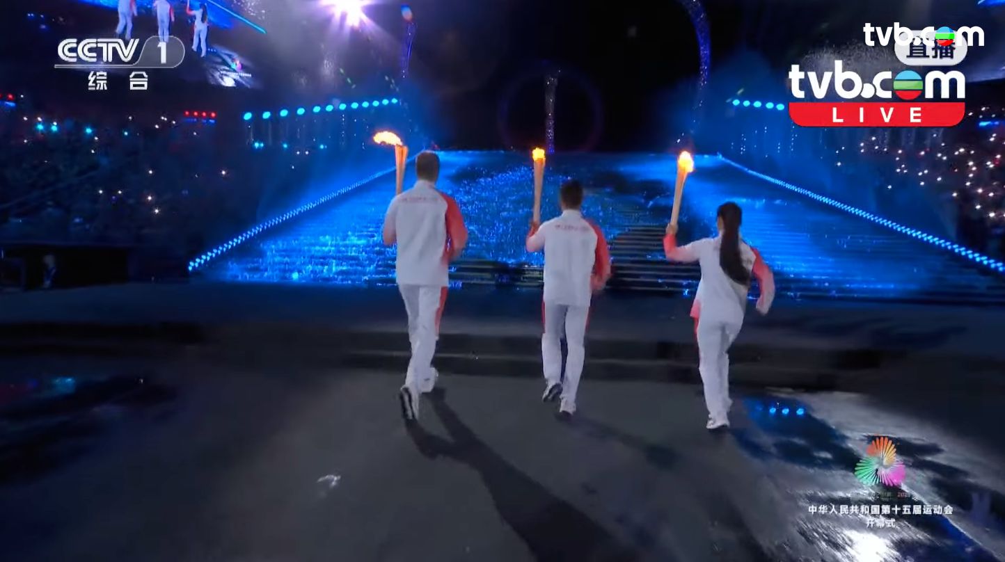全運會燃點聖火是開幕禮重要一部分,其中2位火炬手是大家熟悉的黃金寶及郭晶晶,而廣東蘇炳添、香港蘇炳添和澳門李禕為最後一棒,負責一同點燃主火炬。