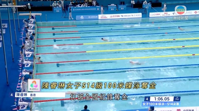 這位巴黎殘奧銀牌得主,最終游出1分06秒05,打破全國紀錄奪金。隊友劉肖儀落後3秒19摘銀。陳睿琳今屆參加五個項目,取得三金兩銀。