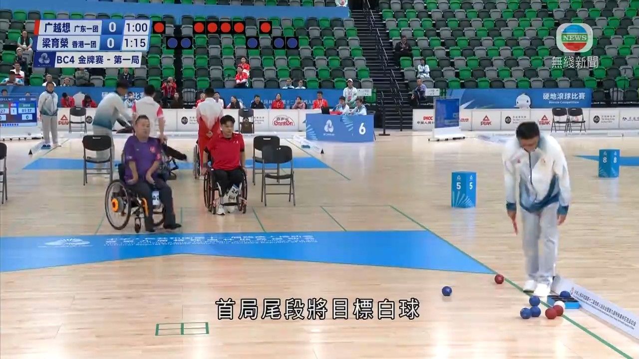 殘特奧會硬地滾球|梁育榮硬地滾球BC4項目奪金牌點讚分享撰文:TVB 發佈日期:2025-12-12 09:27 更新日期:2025-12-12 09:56 殘特奧會,在啟德體藝館舉行的硬地滾球,BC4級的梁育榮首奪金牌。殘特奧會硬地滾球|梁育榮硬地滾球BC4項目奪金牌面對廣東的廣越想,紫衫的梁育榮,首局尾段將目標白球撞出界外,令裁判需要將白球重新放置於場中間位置。結果令場上有4個藍球,與白球距離較接近,打完首局就拉開4-0。第二局輸回1分,第三局再贏2-0,奠定優勢。首次參加殘運會的梁育榮,結果贏7-1,為硬地滾球港隊,奪得今屆第一金。#殘特奧會#硬地滾球