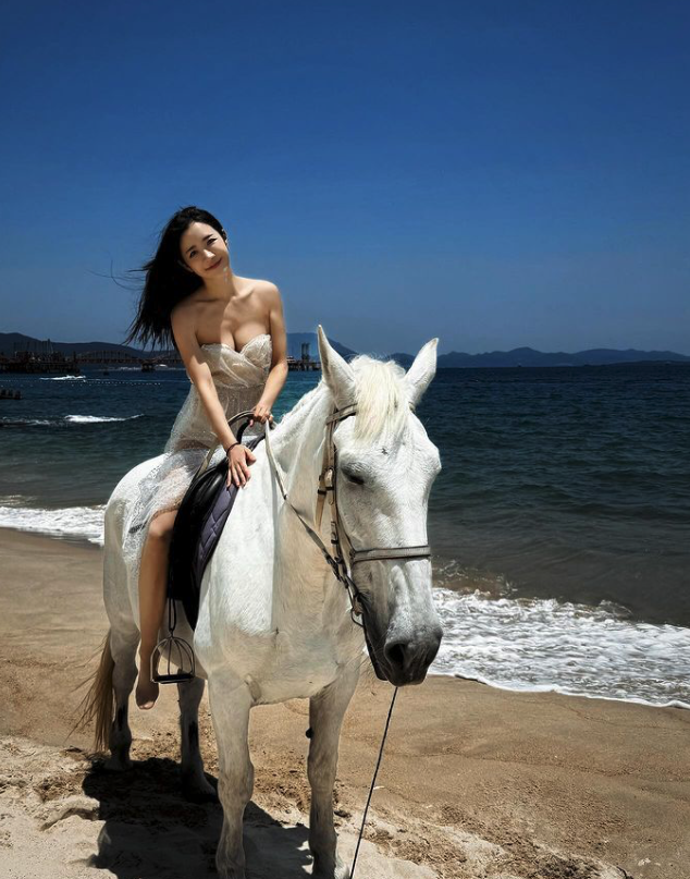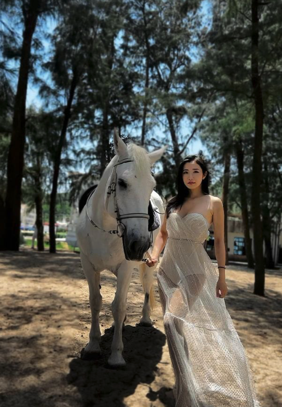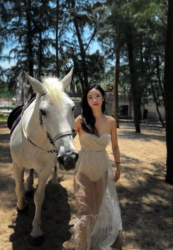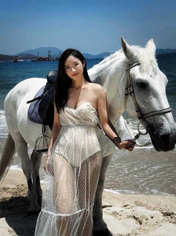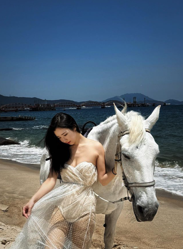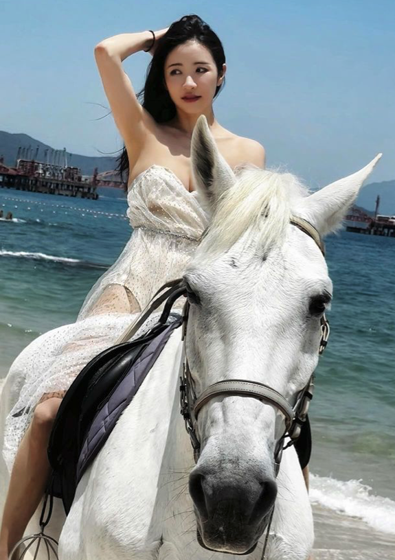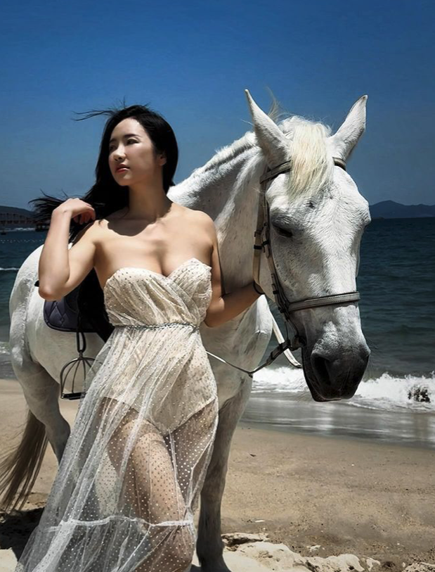 不過,另一位前東張女神利穎怡在當日po出的性感靚相卻被網民指更勝一籌!雖然利穎怡只是身穿晚裝 「出戰」,理應不似泳裝般更有視覺衝擊,但利穎怡這套晚裝的超低胸+薄紗透視設計,卻令其豐滿身材一覽無遺,震撼網民眼球!而她身騎白馬,一頭秀髮被海風輕輕吹拂起,更讓整張照片的氛圍感直線上升!