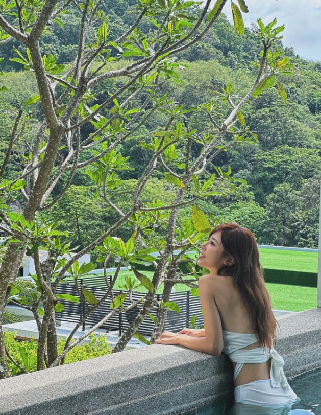 近日(20日),她在IG貼出性感泳衣照,分享其與老公甜蜜Staycation的日常。見林泳淘身穿掛頸綠色泳衣,上身的bra top中門開窿,雙手放在頭頂做出大心的甫士,加埋標誌性甜美笑容,相信擊中不少宅男的心。![]()