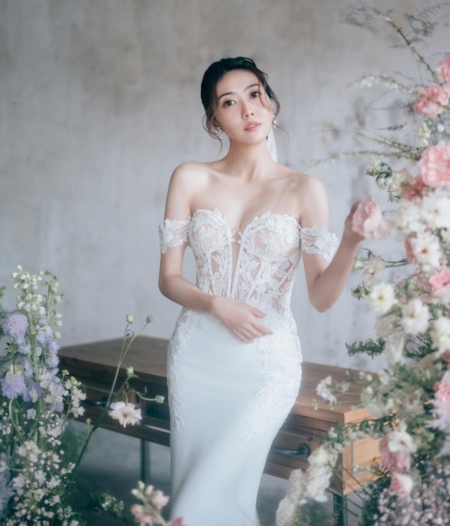 日前(18日),Mandy上傳了多張婚紗照,身穿白色低胸喱士透視魚尾晚裝的她仙氣飄飄,寫道:「這是一條不能吃飯的裙子,拍照前只喝了一杯咖啡,但拍攝的時候也要縮肚子……好吧,下次決定什麼都不吃也不喝。期待下次再跟這個團隊合作,女生都喜歡拍照留倩影。」