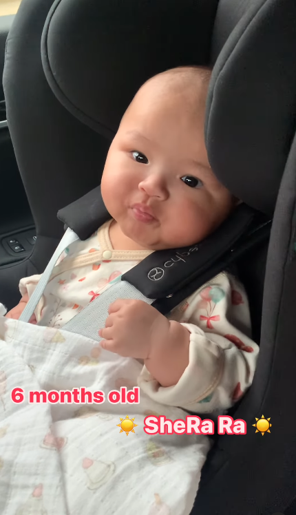 轉眼間寶貝女已經六個月大,朱慧敏前日(6日)於IG上載一條帶住娃娃遊車河短片並發文稱:「我嗰日帶娃娃遊車河,佢突然食手手,我話 「娃娃妳係咪肚餓呀?食手手唔飽架喎,我哋依家返屋企食奶奶喇 !」然後,娃娃主動停咗啜手手,跟住就發明咗啜咀咀 ,哈哈。」見片中,Shera一如過往好有肉感,網民都被她啜咀咀的可愛表情瞬間融化,在帖下大派心心眼:「越睇越可愛!她的行為真係令人會心微笑。」非常治癒!還有人留言讚爸爸:「好得意呀,請問你哋係咪住喺跑馬地?有一日我喺返工期間咁啱有緣見到你老公喺萬寧幫sherara 買BB濕紙巾。」朱慧敏亦有回覆:「哈哈!多謝,我先生工作嘅醫院喺跑馬地!」