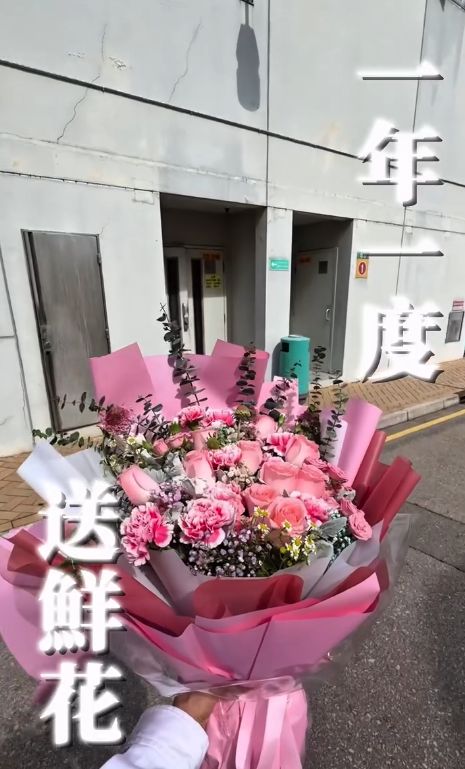 片中可見,他給了一疊「假銀紙」花店的人,更配上「花商無情起花價」的文字,之後騷出銀包「無錢剩」,最後他成功將鮮花送給滕麗名,阿滕強擠笑容樣子,非常搞笑,但周嘉洛一於懶理,照攬着對方合照,並發文:「花雖貴,但母親值得擁有,唔好忍,請及時向母親抒發你嘅愛❤️我愛你」。