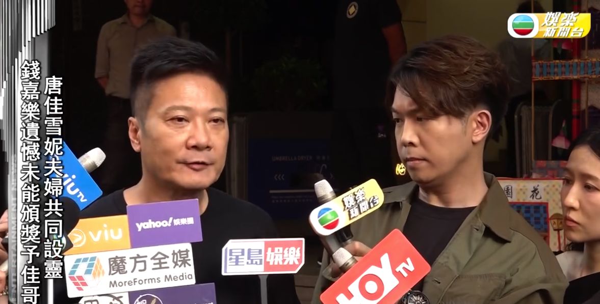 黎耀祥則坦言很懷念兩位前輩,因入行時唐佳經已擔任武術指導,自己跟雪妮合作無數劇集。他又指兩位前輩對後輩非常好,靈堂內播放唐佳與雪妮生前片段和照片,令大家好好緬懷。
