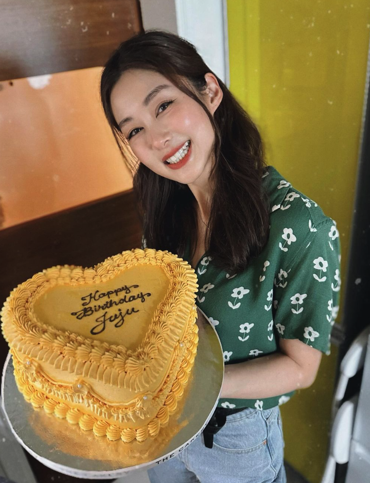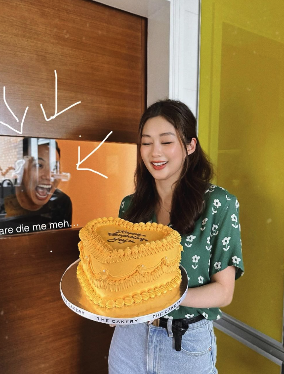 時光如白駒過隙,這麼快細仔Juju喜迎3歲生日,昨日(1日)香香在社交平台連發兩帖分享寶貝Juju生日派對的喜悅及趣事。相中身穿綠色碎花上衣的香香手捧超大黃色心型蛋糕,豈料老公強強突然現身香香側面,隔着玻璃擘大口大叫嚇老婆 ! 雖然香香被被嚇了一跳,不過幸好手中蛋糕沒有脫手,虛驚一場的她以英文寫道:「The second photo…Scare die me meh. Good thing I didn’t drop the cake(第二張照片……嚇死我了,還好蛋糕沒有掉)」,並附言:「Thank you for all the B-day messages to “not cute” Juju(感謝大家給『不可愛」Juju的生日留言)」。