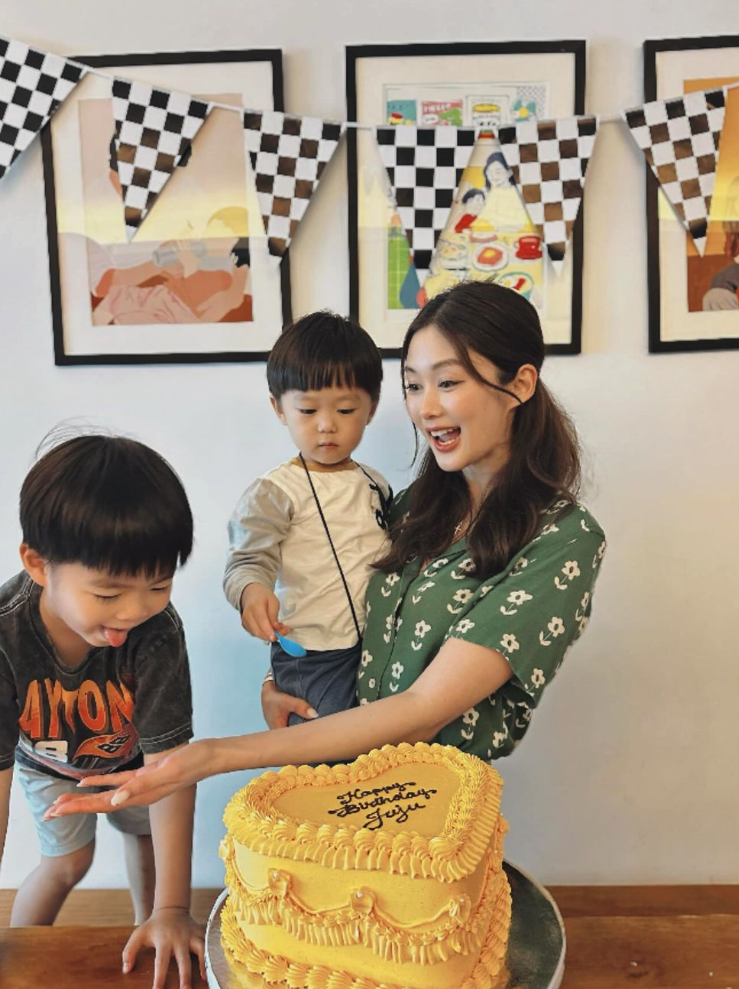 香香在另一帖子中則發文指細仔Juju是她的精神支柱,雖然他才3歲但給了自己很多啟發。從香香貼的生日照中看出生日派對在家中舉行並邀請了其他小朋友一起參加。一見到蛋糕放上枱的Juju便急不可待拿著膠匙揮向蛋糕,而哥哥Jacob亦在一旁伸脷示意想吃,現場氣氛溫馨又歡樂,而好友鍾嘉欣、陳煒、宋熙年等也在貼文下送上生日祝福。