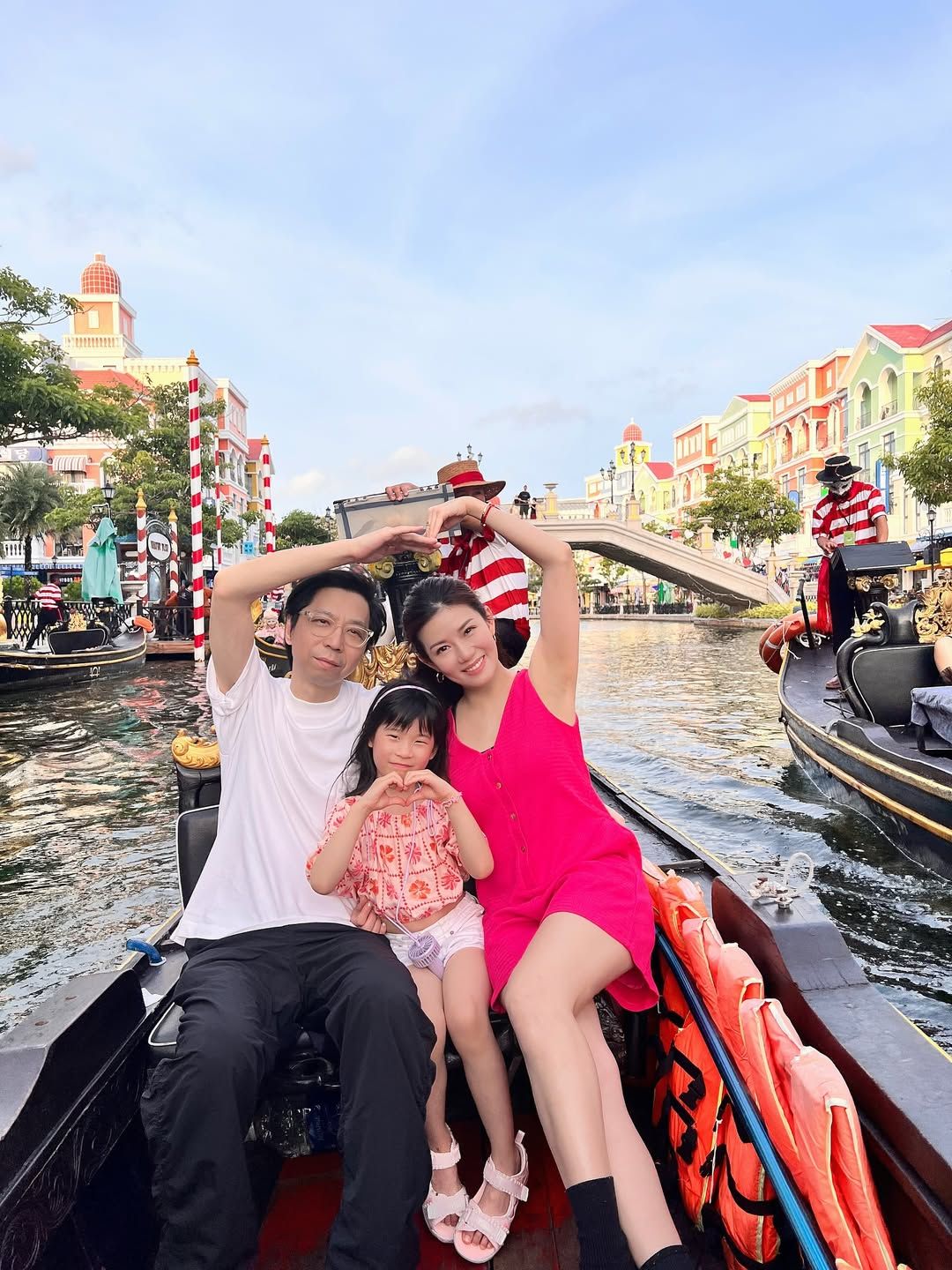 張美妮一家三口玩得十分盡興,除了體驗坐貢多拉船外,還帶囡囡Kelly去動物園親親動物,十分溫馨。至於美食當然少不了,張美妮老公Book了一間正爆餐廳歎美食,女兒Kelly還充當攝影師,幫爸爸媽媽拍照,張美妮留言:「女兒視角,呢間餐廳係老公安排的,我好滿意大力讚賞佢,你睇佢,即時繞晒手咁~好驕傲。」兩公婆更恩愛嘴對嘴錫錫,閃盲人呀!