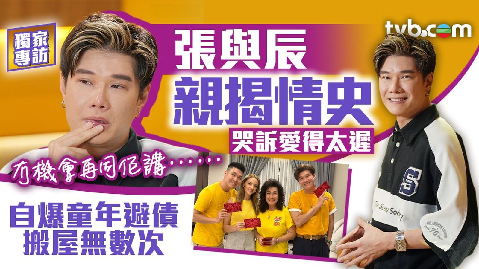 童年生活絕不易過,張與辰不但曾試過一個白麵包吃足幾天,家人為了怕債主找上門,故不時搬家,在短短幾年整個西馬也住過,直至長大後的他回想這段東奔西走的日子,想不到當時其母親是怎樣撐起整個家。