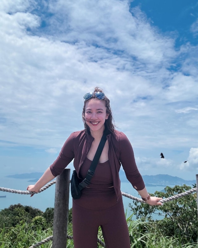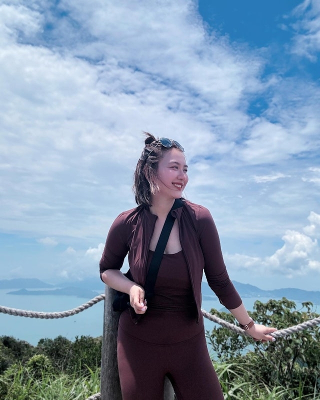 昨日(22日),Tracy在社交平台分享了一輯行山相,以英文留言:「One step at a time x 8000 = 1st hike in HK」。穿著一身酒紅色運動裝的她對著鏡頭瘋狂自拍,心情大靚!見相中Tracy皮膚紅潤白皙,非常光滑,手腳雖仍然有些圓潤,但整體身型看上去非常健康!另外,雖有背包擋著,但依然能發現Tracy的上圍明顯升級,相當豐滿。![]()