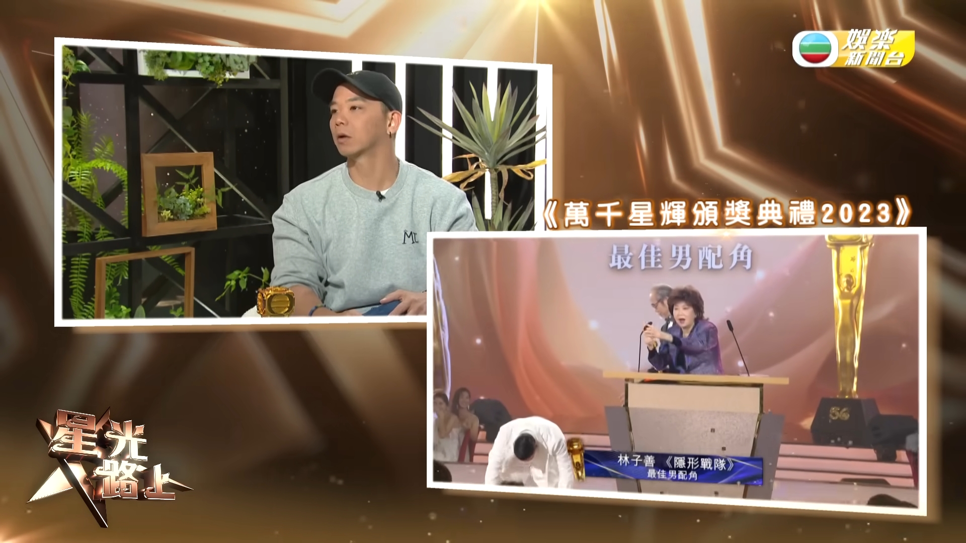 林子善於早前的《萬千星輝頒獎禮2023》中,憑劇集《隱形戰隊》首次奪得最佳男配角,得獎當時激動在台上一邊講得奬感受、一邊爆喊,近日子善登上TVB娛樂新聞台節目《星光路上》,與主持潘盈慧分享得獎喜悅及演藝路上的崎嶇,在提到要感謝的人時,子善眼睛紅紅又幾乎爆喊,還揭開了在頒獎當時,默默低頭轉身離開然後被馬明一手抱著的背後原因。![]()