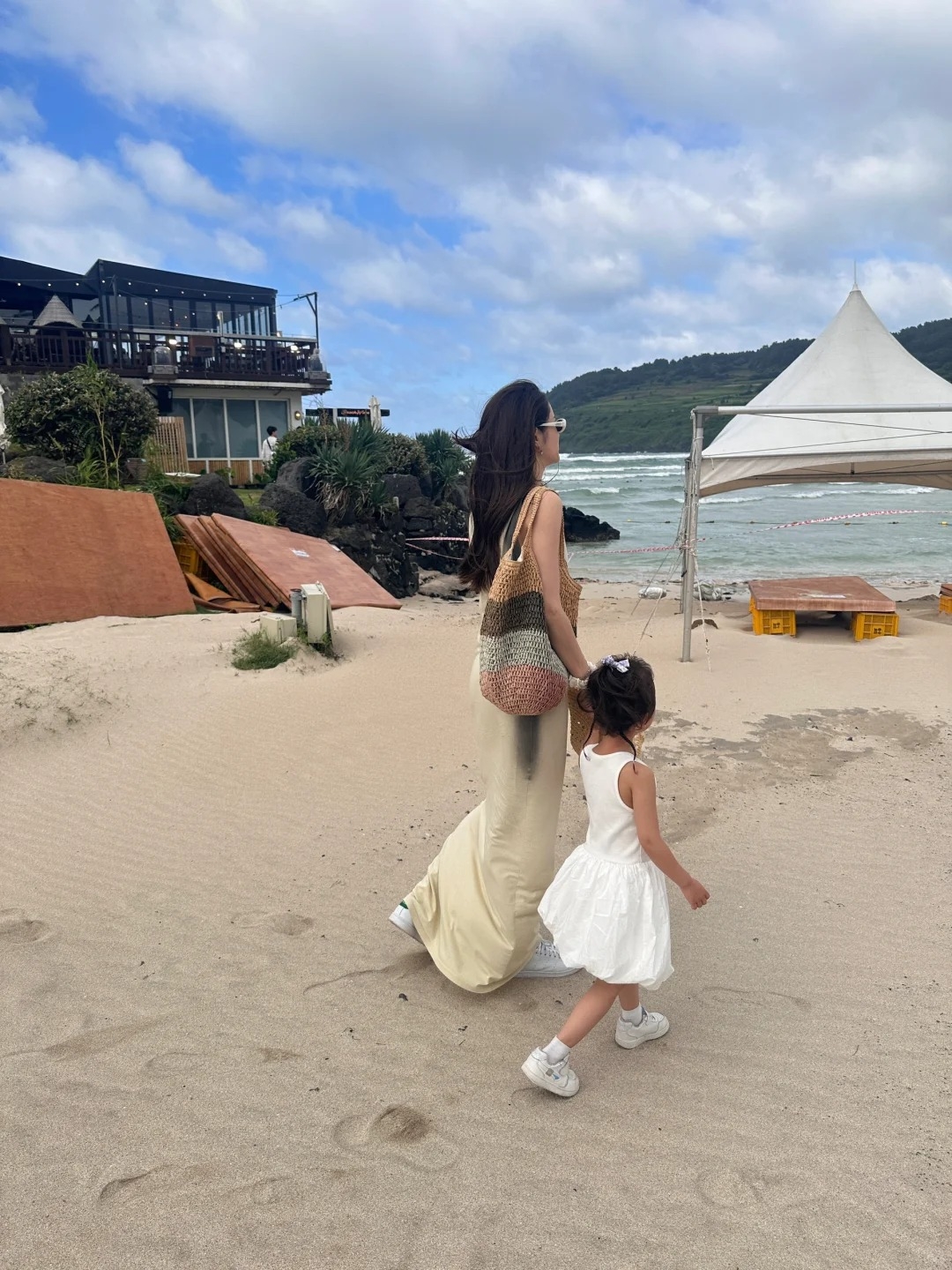 趁住囡囡的假期結束前,張馨月日前(5日)在社交平台分享一輯母女飛韓國濟州島旅遊的靚相,並寫道:「Luna的假期即將結束,這個暑期一直都在香港,沒帶她出去玩,於是抓住最後的機會,找了個免簽的國家,展開了最後假期的快樂時光。到達濟州島,確實挺美,幾天下來覺得適合姊妹們一起去,真的很出片,原本還要去牛島,但因為Luna水土不服嘔吐➕發燒,結果沒去成,只能下次啦!」