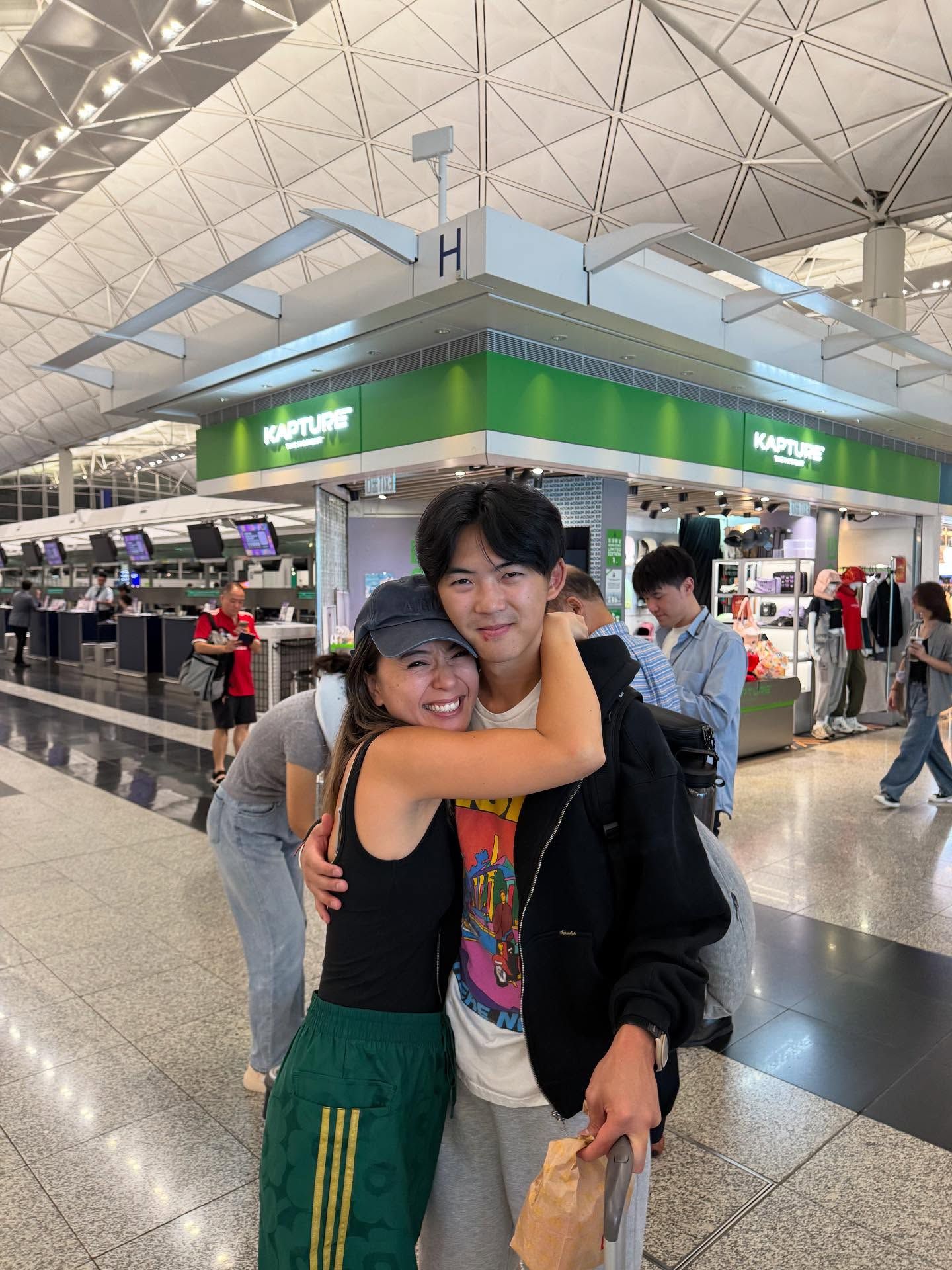 她發文:「眼有淚光都要忍住㗎喇,丹麥讀書快樂喇☺️我要一日一電話㗎仔!」相中可見,她攬到仔仔實一實,大仔更與妹妹和爸爸逐一攬攬,場面溫馨。