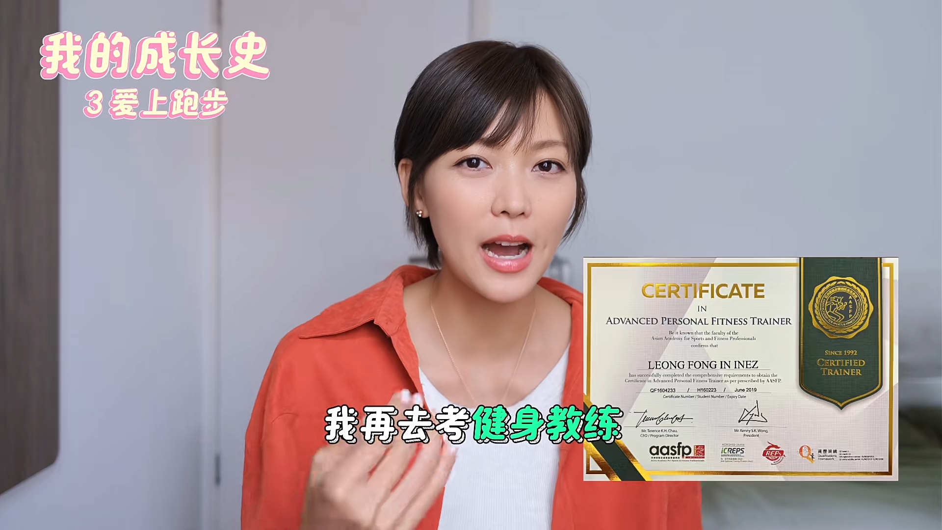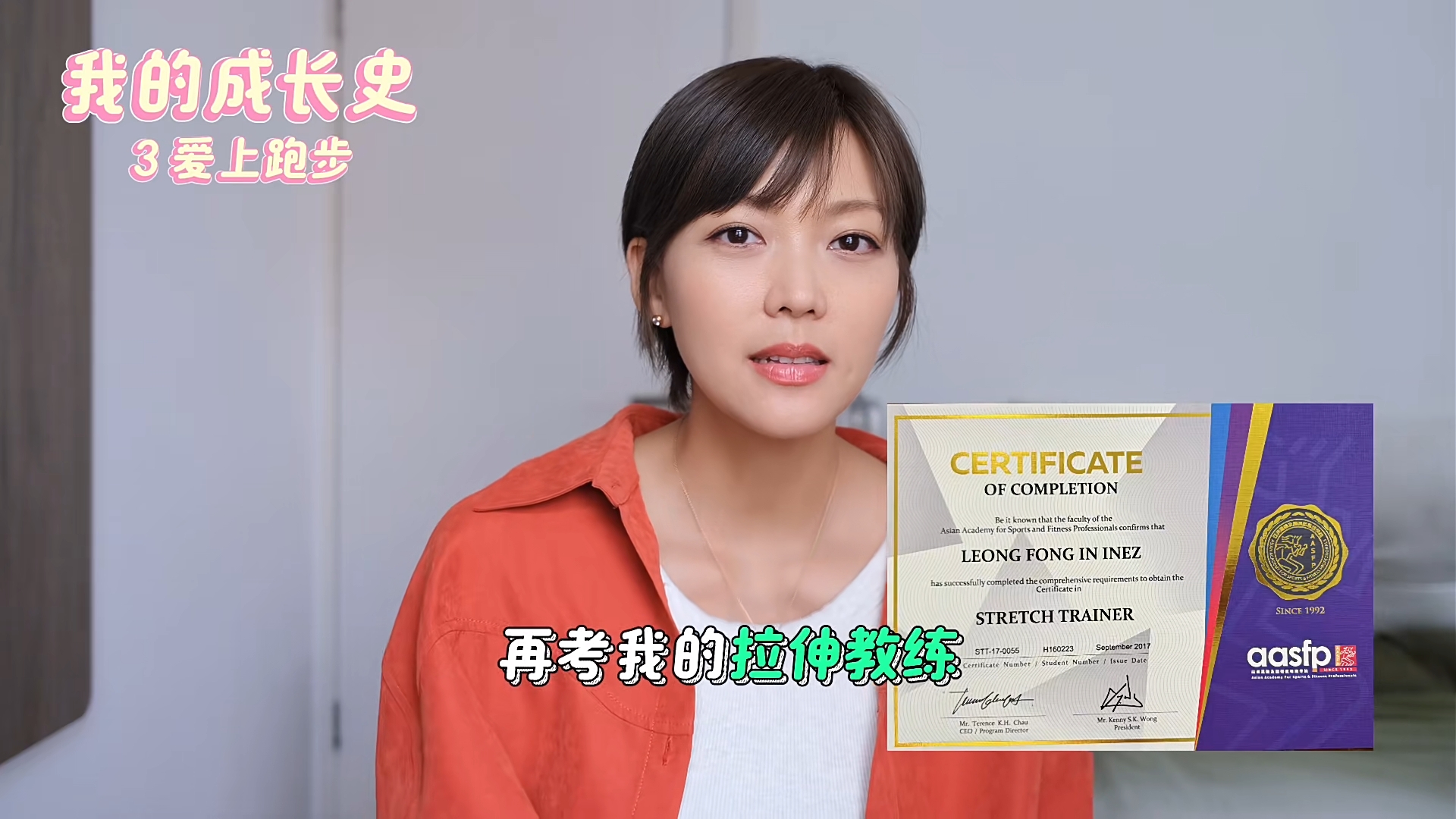 後來,她不經意間開始跑步,並且越跑越喜歡上這項運動,漸漸地,她從跑步中找到了自我!Inez指,雖然跑步確實也不可以幫她去解決些什麼問題,不過就可以令她頭腦清晰,出一身汗就重新出發。熱愛跑步的她後來也因為跑步而接了不少品牌代言,更獲得贊助去不同地方跑馬拉松。去到2016年,Inez完成了自己人生第一個馬拉松,之後更考到了長跑教練、健身教練、拉伸教練、產前產後、營養及體重管理等多個牌。另外,最值得Inez欣喜的是,跑步也令她認識到Tony,並組織了一個好有愛的家,所以比起某個具體的人,她最感恩的反而是跑步,因為令到她的人生逆轉。