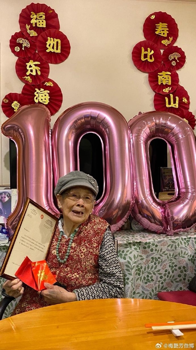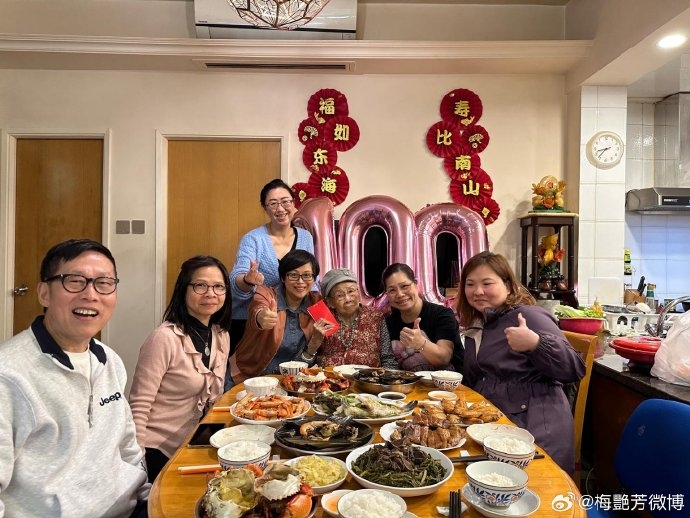一代歌后梅艷芳的母親覃美金早前100歲生日,榮升人瑞。她與家人低調慶祝的相片於網上曝光,從相中所見,親朋好友以壽包及蛋糕等替她賀壽,不過就未見兒子梅啟明的蹤影。相中可見派對的現場特意準備了「100」字眼氣球、福如東海、壽比南山等祝福標語,當然少不了放滿整桌的賀壽宴,菜色相當豐富。