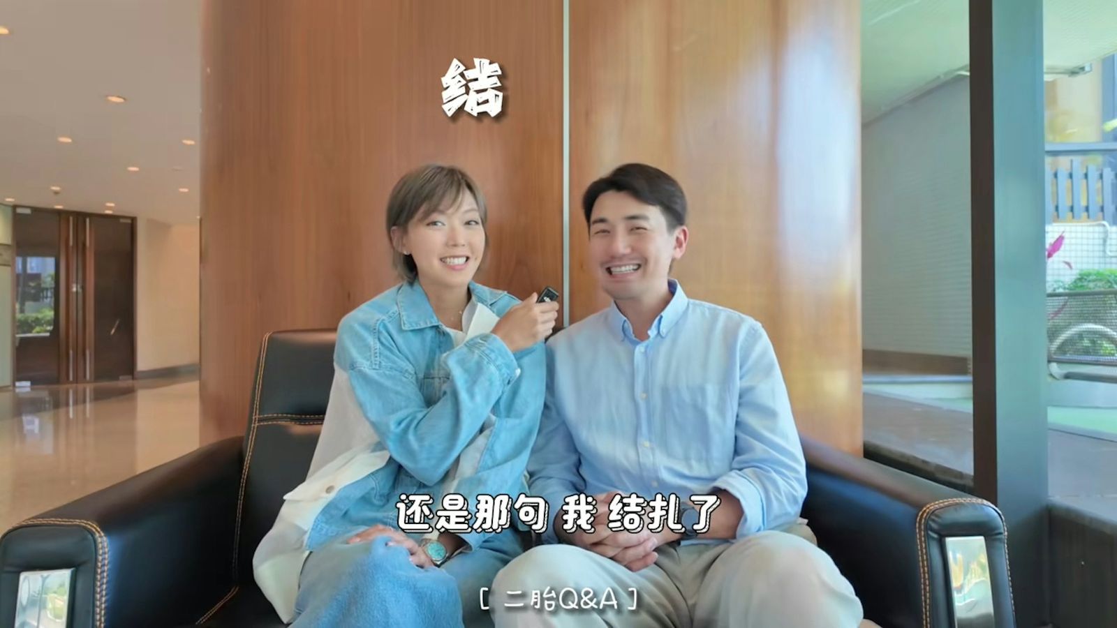 片中梁諾妍問老公:「你會唔會再想生多個(追仔)?」洪永城望着太太笑言:「都係嗰句。」然後夫婦異口同聲逐粒字說:「我...結...紮...咗...嘞!」。梁諾妍再加了兩聲:「哈哈」,場面搞笑。