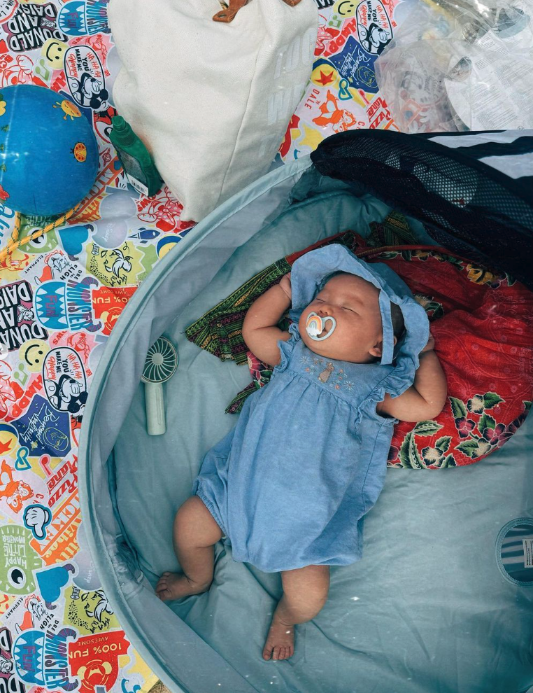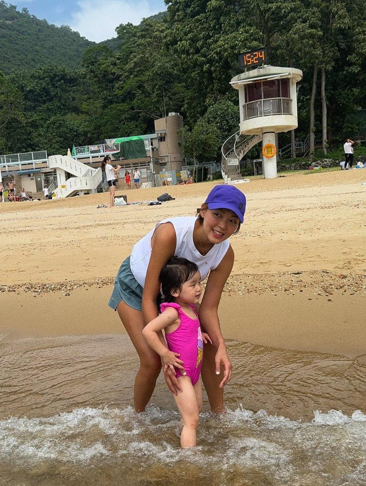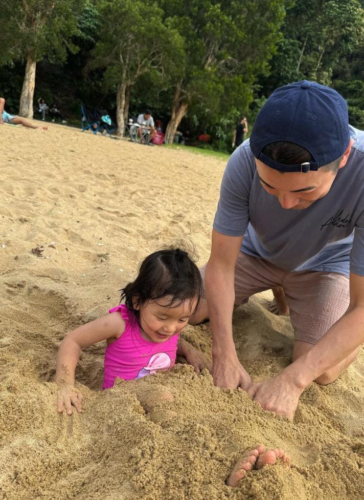 夫妻倆亦不時於社交平台紀錄兩個寶貝女的成長點滴,踏入六月的第一個週末,洪氏一家四口便去到南灣沙灘享家庭樂,Tony和Inez日前(3日)在IG分別曬出一輯相片,見Sir Face 穿上一件桃紅色泳衣,在媽媽的帶領下玩水又和爸爸堆沙,而兩個月大的細女「Sir Nose」則享受在陽光下睡覺,十分可愛!