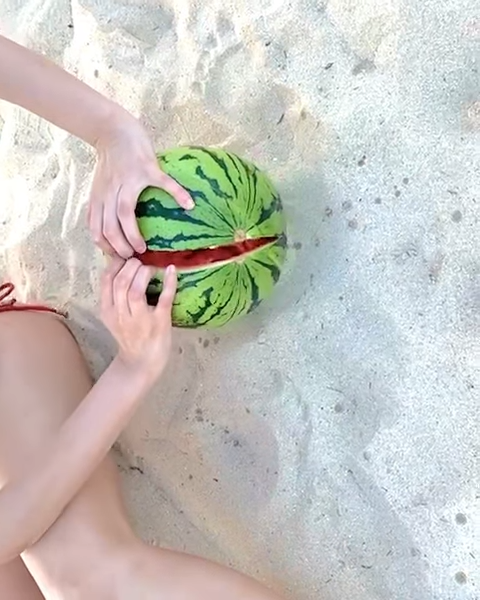游嘉欣徒手劈開西瓜臂力驚人 意外曝光性感泳裝 網民錯重點!