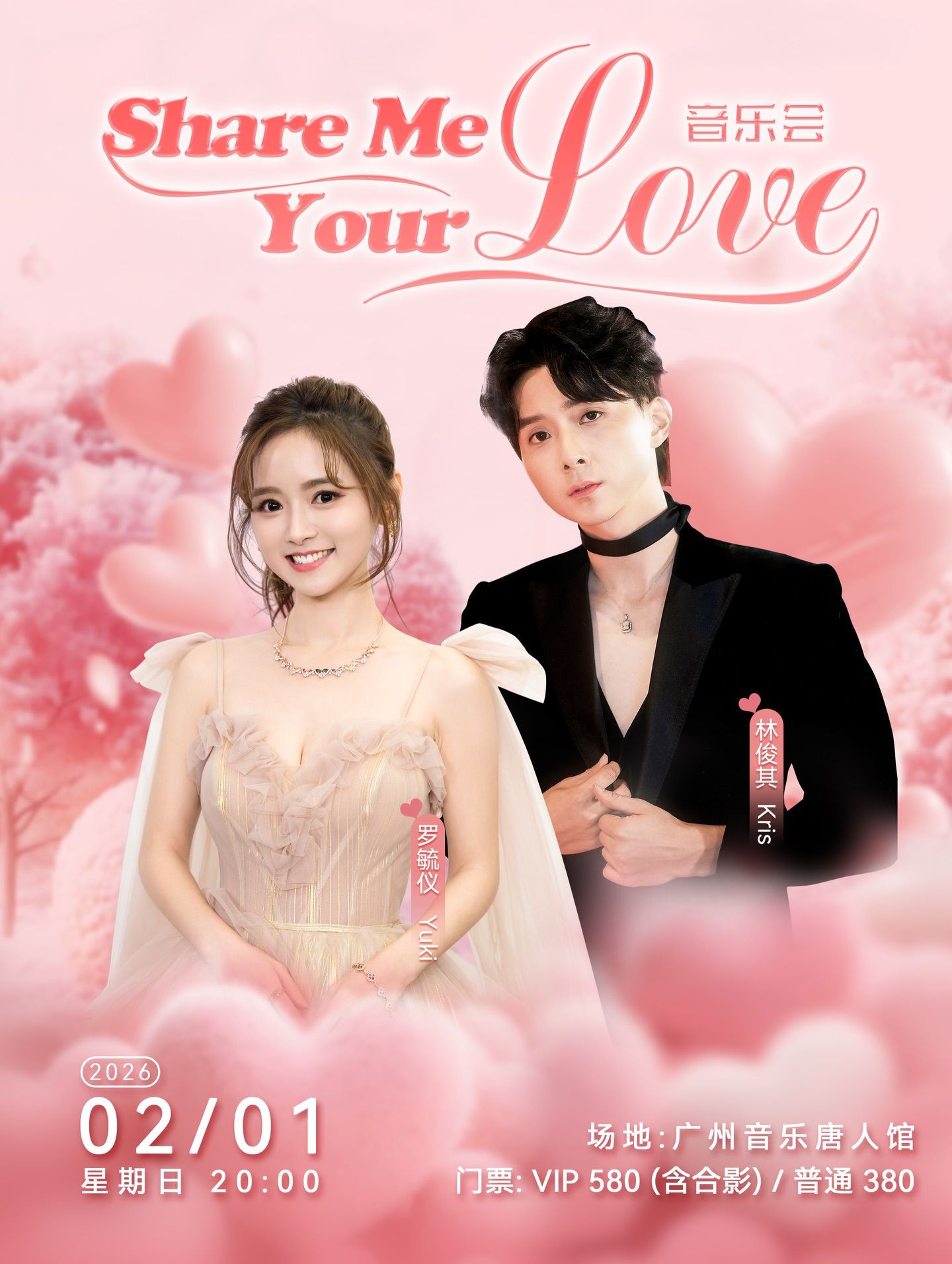 羅毓儀(Yuki)和林俊其因《女神配對計劃》成為CP,他們將在2月1日與另一對CP葉蒨文和曾展望以及蔡思貝在廣州開音樂會。