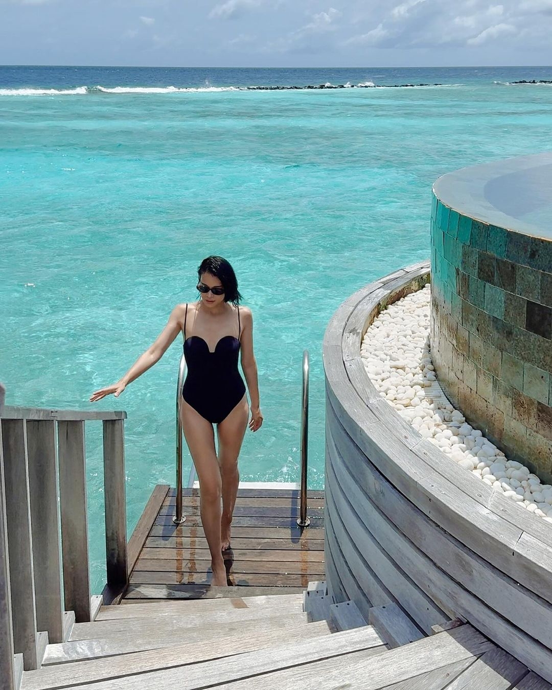 杏兒po出多張在馬爾代夫海邊的性感泳衣相,共有黑、綠、白三種一件頭泳衣款式,杏兒對著鏡頭擺出不同pose,大方展示S型完美身材!見多張照片中,杏兒更戴上黑超享受陽光,美人美景相當養眼。不少網民留言直指其身材與港姐時期差別不大,完全看不出來已經是三個小朋友的媽媽!