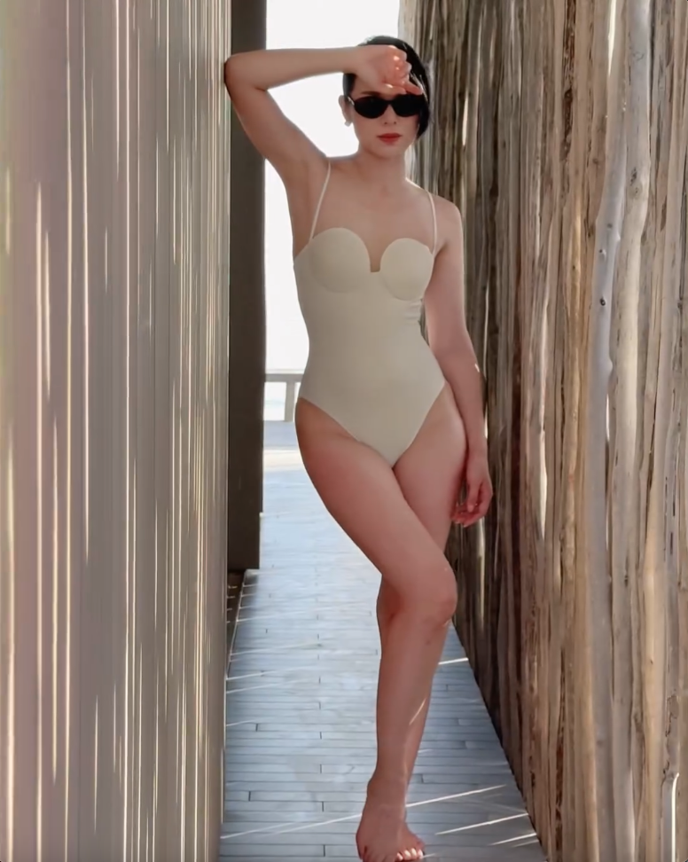 現年45歲的胡杏兒1999年奪得港姐季軍出道,一直以來,杏兒的身材都非常苗條,只有在2006年出演《肥田囍事》時,試過為了角色而增肥40磅。不過在拍攝完畢之後,杏兒便用最快的速度回復昔日好身材,她曾經在節目中透露減肥方法,表示減肥餐單跟增肥時的截然不同,在減肥過程中她只吃雞蛋、蔬菜及水果,每日堅持做30分鐘帶氧運動,達至消脂效果。如今杏兒已經是三個小朋友的媽媽,不過仍然擁有健康纖瘦的身材!今日(22日),她發布了一輯海邊泳衣相,罕曬比堅尼造型,大騷美好身段,令網民看到心心眼。