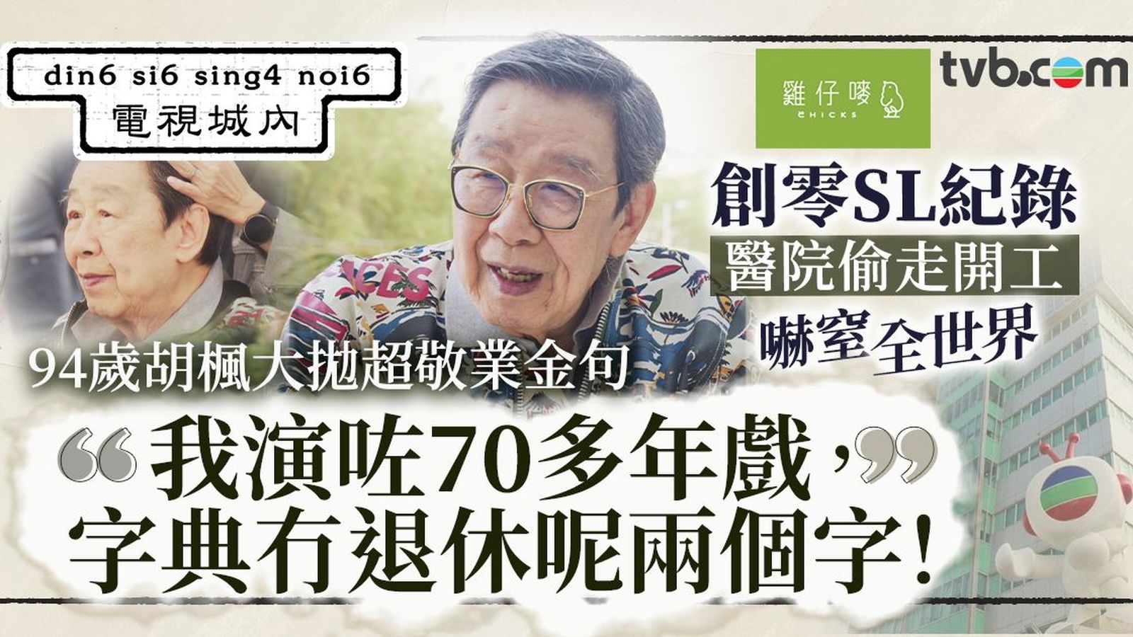 TVB全新網絡節目《電視城內》請來「影視界長青樹」胡楓(修哥)細訴他的電視故事。由影圈進入電視台,修哥說薪酬是兩碼子事,但在電視台工作令他感到非常興奮,一邊做綜藝拍 EYT,又可以在不同劇集做爸爸演爺爺,還有拍處境喜劇如《都市方程式》、《季節》、《皆大歡喜》等,忙個不停,但修哥說自己是愈忙愈開心的人,儘管收入和電影無得比,但可以創下電視台最多騷的藝人已視之為自己最大的成就。