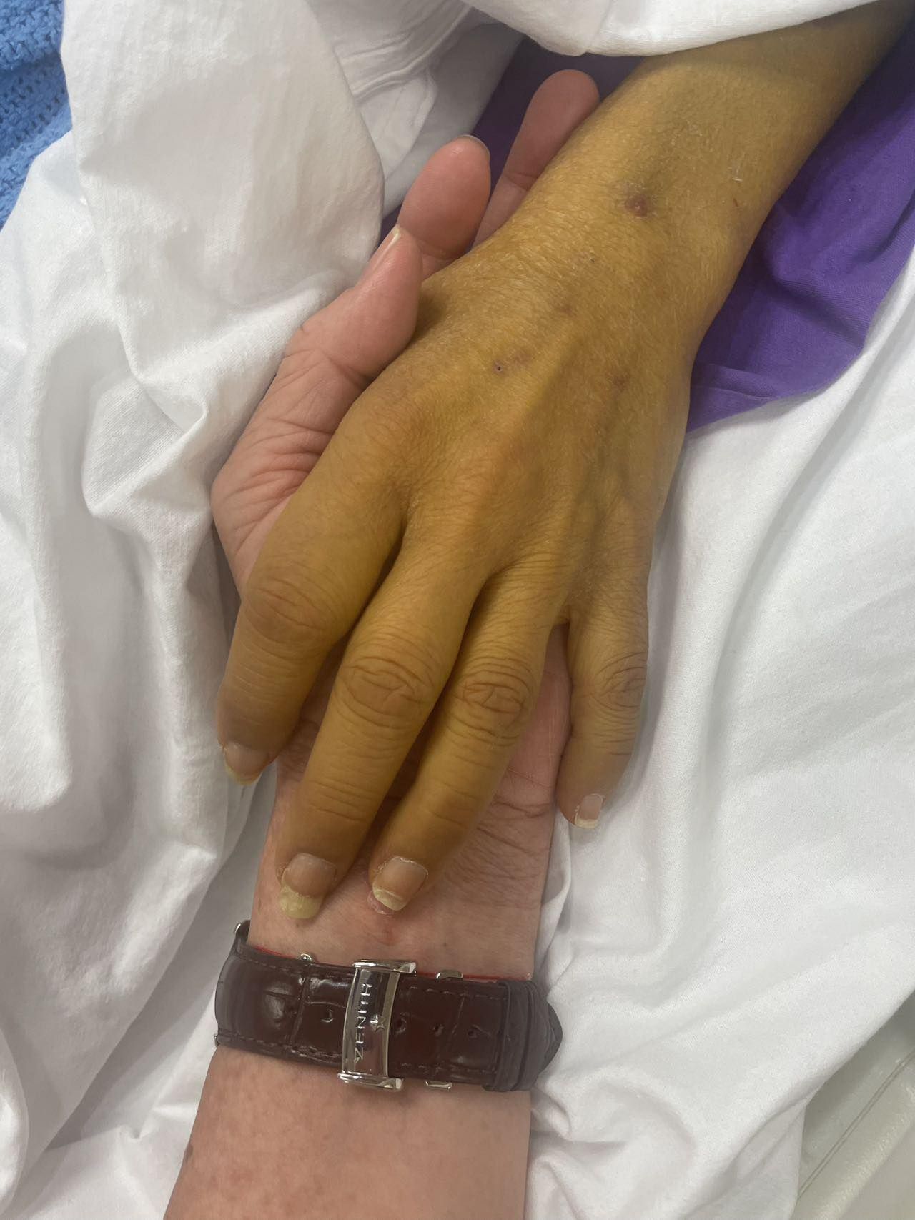 最終Lisa病情惡化,等不及換肝病逝,老公艾威當然感到無比痛心,今日(19日)他強忍悲痛,在社交網上載與太太最後牽手照,患肝病的Lisa皮膚呈深黃色兼有些水腫,兩公婆緊握對方,度過最後時光。