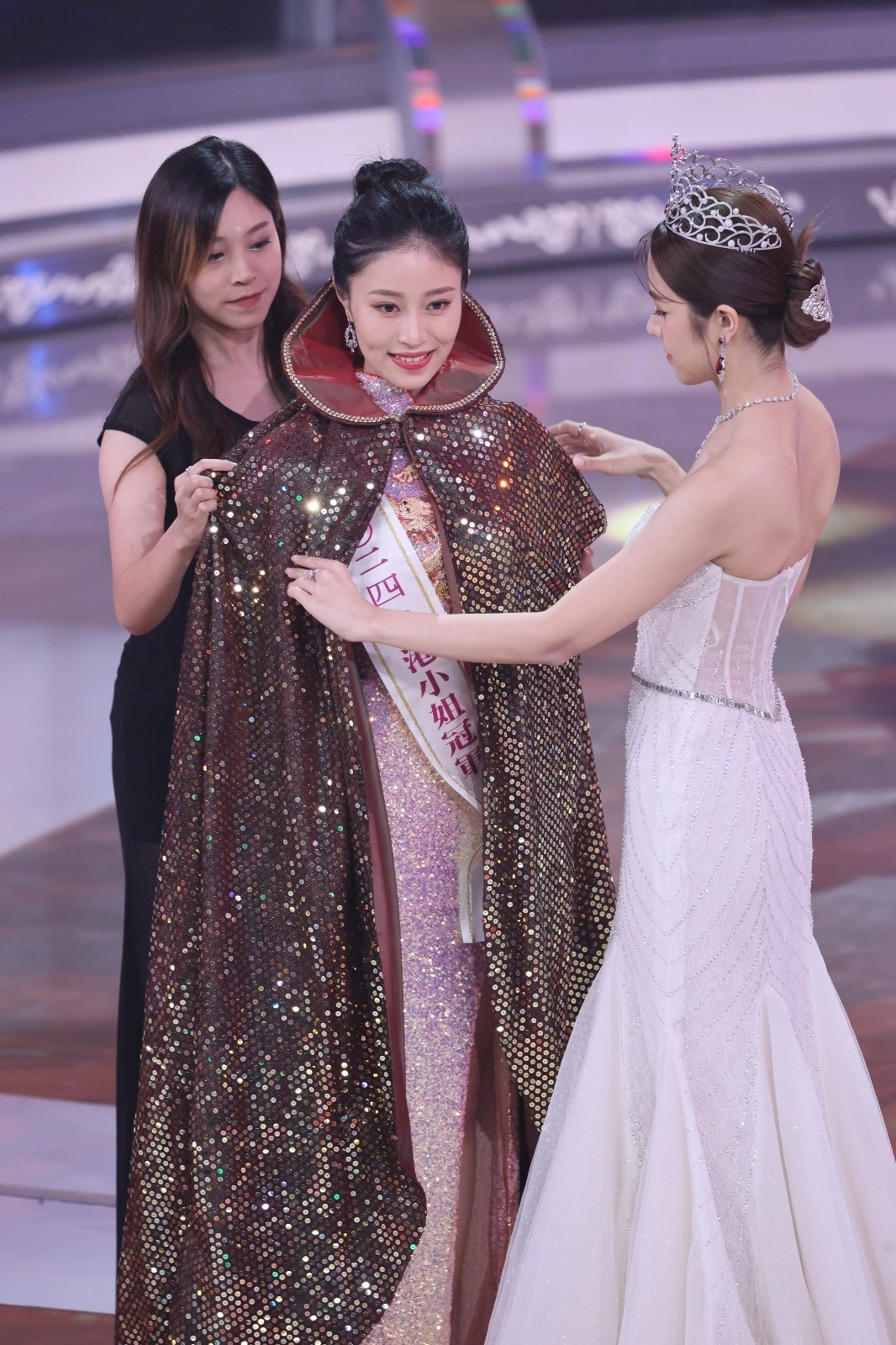 《2024香港小姐決賽》於昨晚(15日)圓滿落幕!上屆港姐冠軍莊子璇(Hilary)身穿淡紫色低胸紗裙亮相,為新誕生的港姐冠軍2號倪樂琳加冕,親自為其戴上后冠及交接權杖,將港姐重任轉交給師妹。