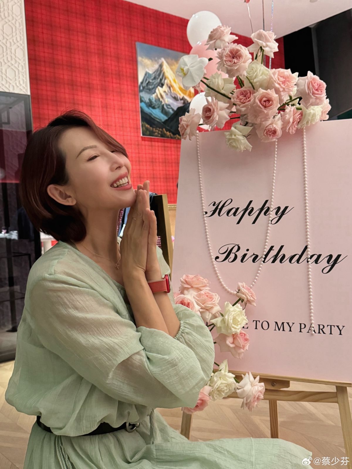 9月17日是蔡少芬(Ada)51歲生日正日,適逢又是一年一度「人月兩團圓」的中秋佳節,因此更具意義。在這個特別的日子,Ada在社交平台發文並曬出與老公張晉的甜蜜合照,相中Ada小鳥依人般依偎在張晉懷中,粉紅泡泡溢出屏幕。而最令其感動的是,老公精心佈置的生日現場,充滿粉紅氣球及鮮花,浪漫又溫馨!