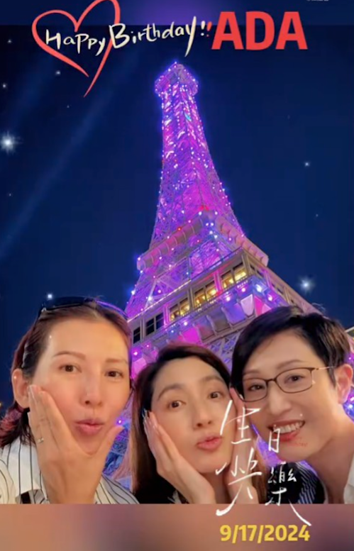 Ada還獲好姊妹陳法蓉及洪欣發文祝福,從她們分享的慶生短片中看到,兩姊妹為Ada送上生日蛋糕並大派心心之餘,陳法蓉還送上香吻,畫面非常有愛。![]()