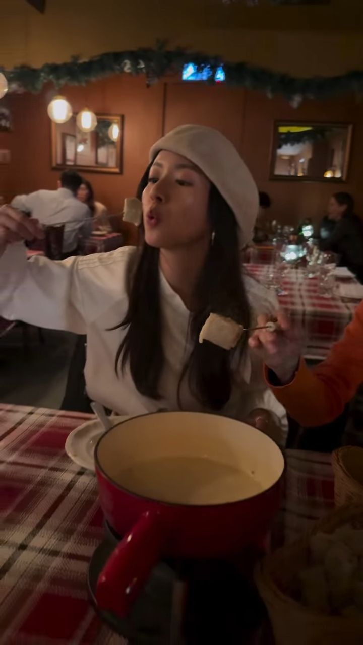 片中可見,她帶父母去特色餐廳吃芝士火鍋,並發文「我們的偽瑞士假期」,見餐廳以瑞士傳統小木屋設計,蔡思貝除與父母開心品嘗香濃的芝士火鍋,還跟爸爸一起打桌球,蔡爸爸球技相當不錯,入球後還興奮地舉V字手勢,當「球賽」完結束後,兩父女互相鞠躬握手,非常搞笑。