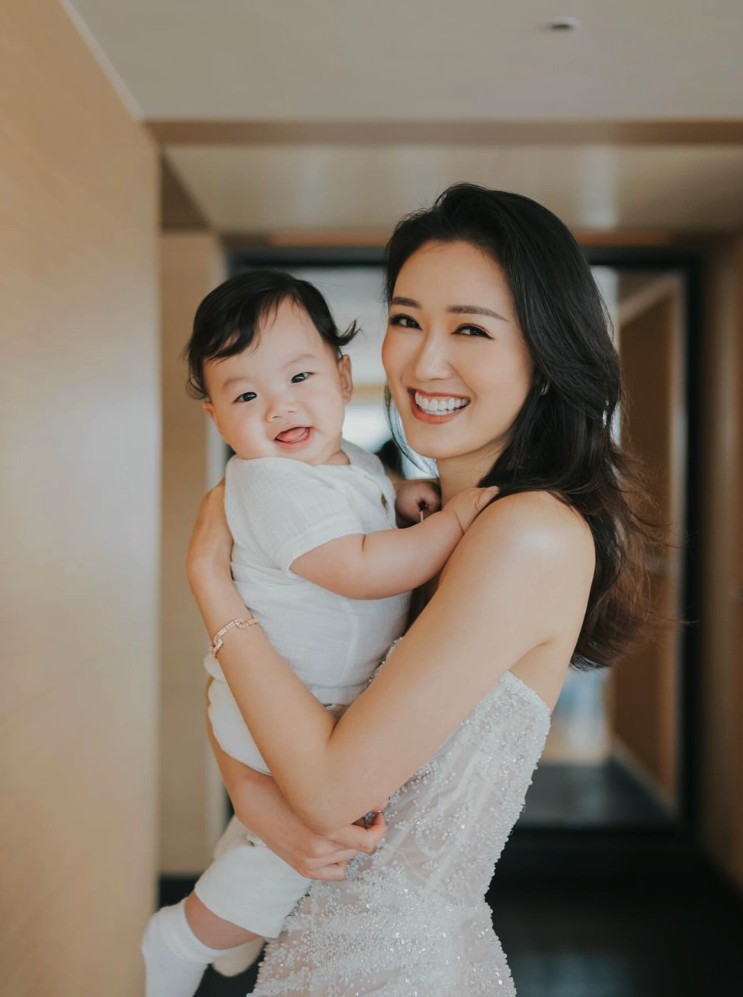 相中9個月大的「袁咕碌」愈加肉嘟嘟,被爸爸媽媽捧在手心,開懷大笑,十分得意!而Bowie的一身裝扮更是吸睛,身穿露肩長裙的她盡現高貴優雅氣質,裙子以薄紗設計,Fit爆身材及一雙美腿若隱若現。當Ben靠在Bowie身上時,粉紅泡泡溢出屏幕!網民除咗羨慕甜蜜的一家三口之外,更對Bowie的身材讚不絕口,圈中好友姚子羚、馬天佑等見到即刻派心,不少網民更留言:「最火辣父母」、「靚到爆」、「好可愛的一家人」等。![]()