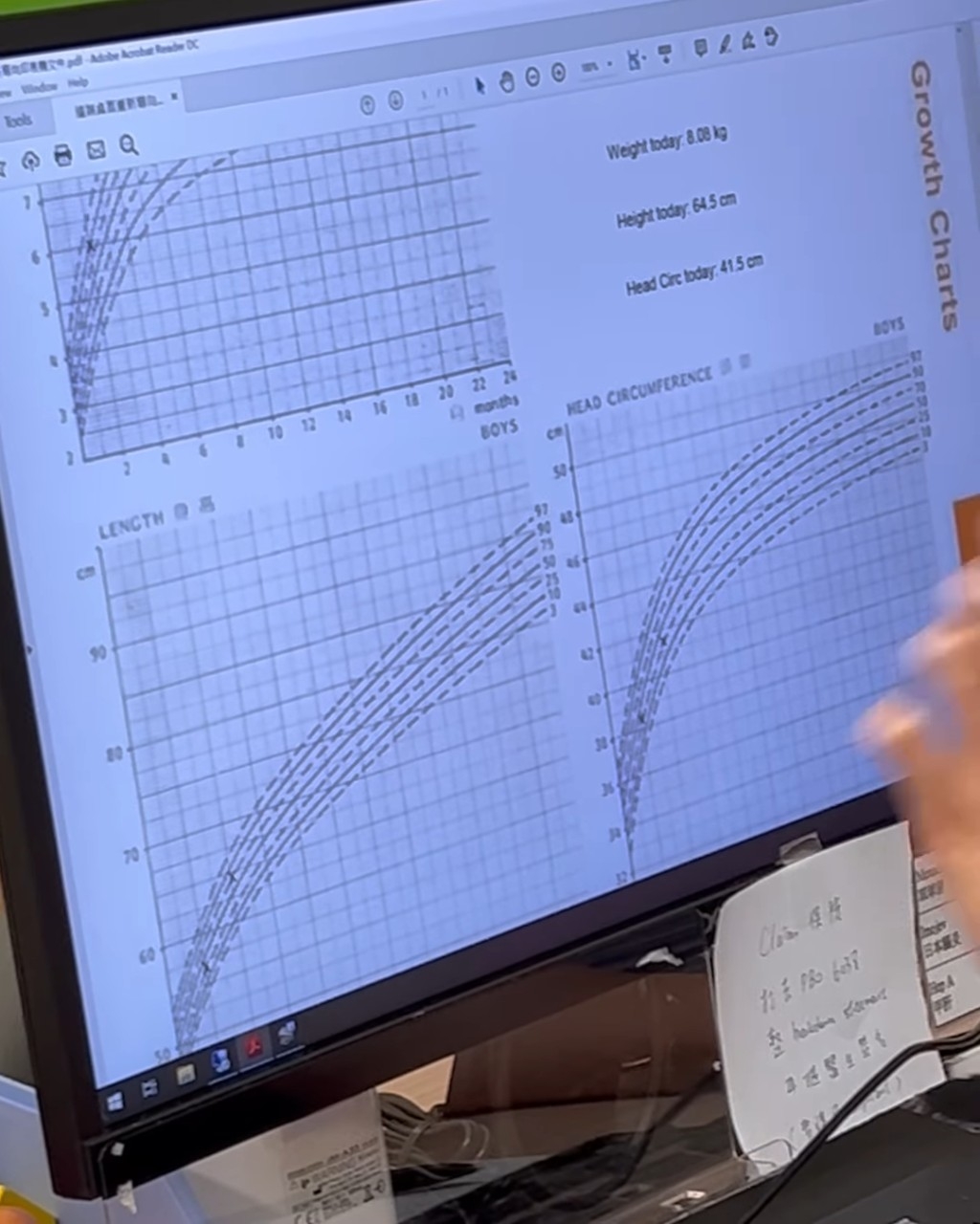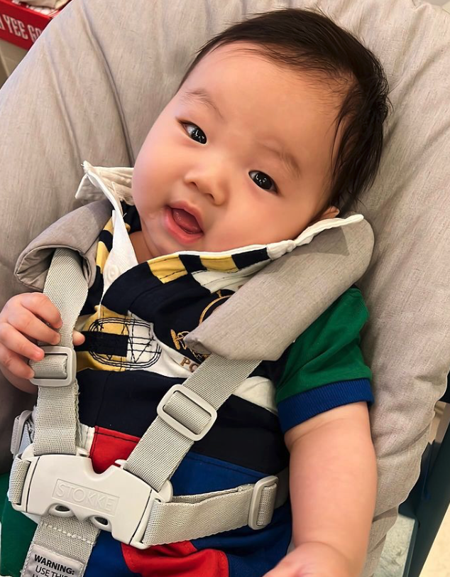 昨日(21)日,張寶兒在社交平台發布影片,分享已經4個月大的「袁咕碌」到醫院做檢查的經過,她表示:「晞祐BB去咗做兒童保健~見返熟悉的姑娘姐姐同埋醫生哥哥,你一啲都不怕(陌)生,生長圖仲顯示你已經係人哋六個月的高度同重量,睇嚟你自己都好滿意呢個成績!咁返屋企你就繼續加油吃奶做運動啦!媽媽睇好你!#袁咕碌 #四個月 #會點頭示意的寶寶 #兒童保健」。人如其名的「袁咕碌」長高又長肉,體重竟達8.08kg,是同齡bb的生長線的頂點,醫生細心講解其生長狀況:「睇返身高都高,頭仔同之前差唔多⋯⋯身高64.5cm挨近中線位,頭仔同之前差唔多41.5cm」。