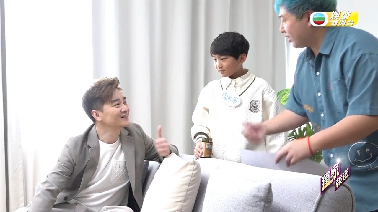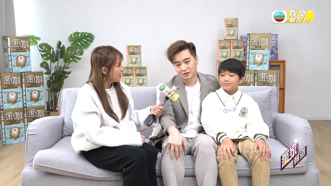 譚輝智最近接拍一個保健品牌廣告,特別之處是他並非單打獨鬥,而是找來姨甥仔Douglas一同上陣。片場氣氛輕鬆,兩人亦非常互動自然,最重要是Douglas竟毫不怯場,說話流暢、表情到位,令導演大讚「有潛質」。