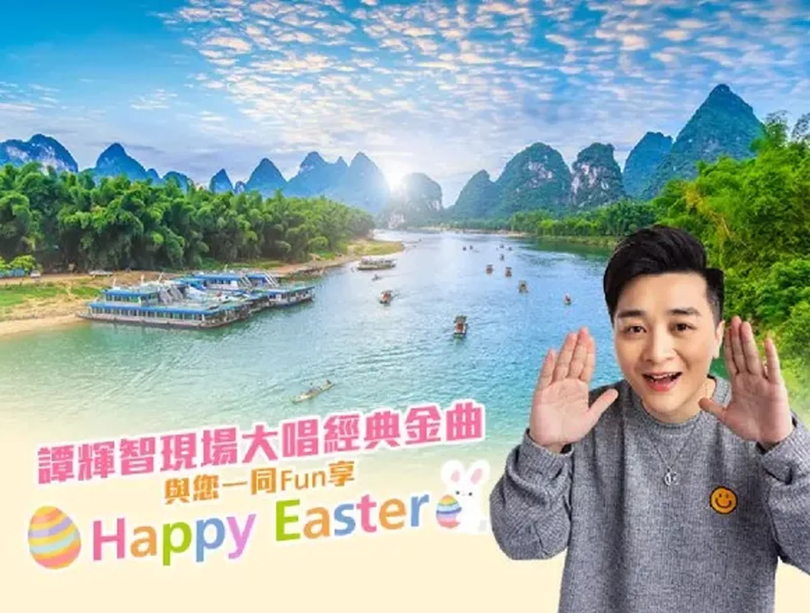 近日網上有多張譚輝智的桂林之旅相片曝光,相中可見,他與一班粉絲在高鐵列車大合照留念,又穿上民族服裝遊覽不同景點,當然不少得在晚宴上獻唱多首歌曲,冧爆粉絲。