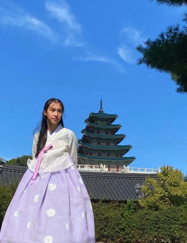 日前(1日),Tania於IG上載多張學校結業晚宴的照片,並以韓文寫道:「閃閃閃閃」。依相中可見,Tania這晚化了少少妝,並穿上一條白色、帶有蝴蝶結裝飾的連身裙,搭配閃閃有踭涼鞋,相當淑女。與多名同學在場內自拍的她看來玩得相當開心。Tania完全遺傳父母美貌基因,身形高䠷,對著鏡頭又好識擺pose,星味十足!大批網民亦留言讚其靚女,稱其是「校花級美貌」。![]()