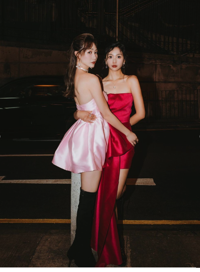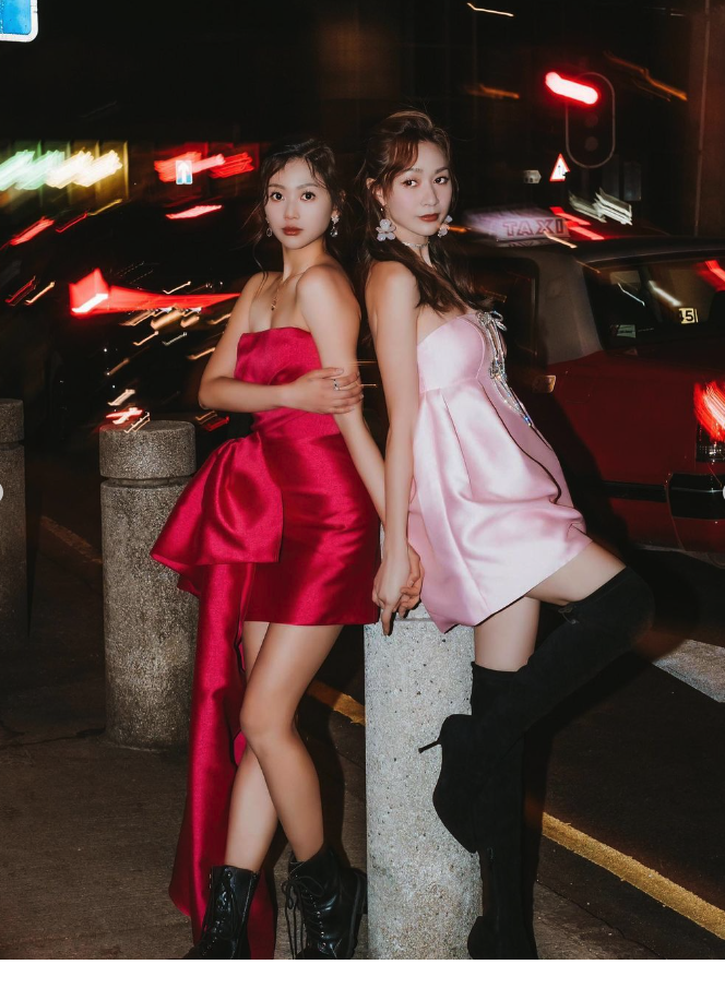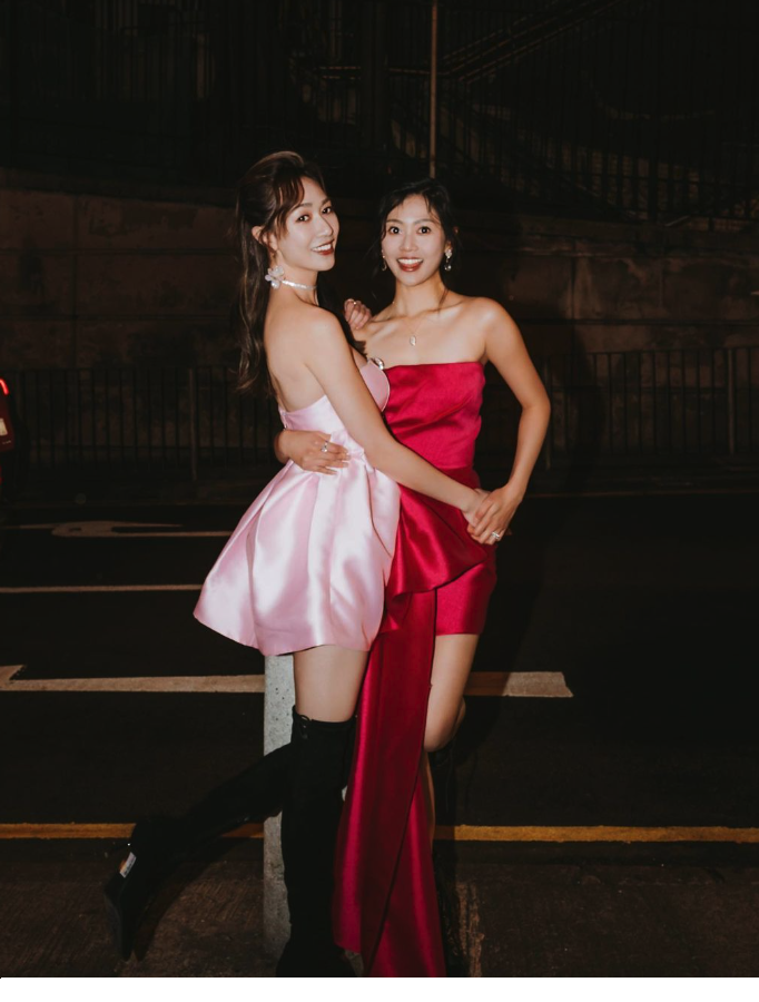 同是港姐出身的無線小花黃嘉雯(Carmaney)和郭柏妍(Rosita)近年來備受力捧,早前兩人憑劇集《下流上車族》成功入屋,令一眾觀眾留下深刻印象,特別是郭柏妍以飾演家姐「車芊芊」一角而人氣急升,更勇奪《萬千星輝頒獎典禮2022》「飛躍進步女藝員」獎項,其實兩位女神私交甚篤!日前(9日)Carmaney就在社交平台po出和郭柏妍合體街拍的美照,令粉絲們大飽眼福!身穿粉色裹胸短裙的Carmaney中門大開,配搭兩個閃鑽蝴蝶結修飾胸口,更添遐想空間!而Rosita的造型都同樣以今年流行的蝴蝶元素作主題,以紅色修身短裙上陣的她好似一朵黑夜玫瑰,腰間的大蝴蝶結裝飾亦令Rosita的身材比例更顯完美~兩人還大騷光滑長腿,配以黑色長靴的她們,展現了性感甜美之餘,也將型格一面傳遞給粉絲,令大家看到她們在風格上的更多可能。