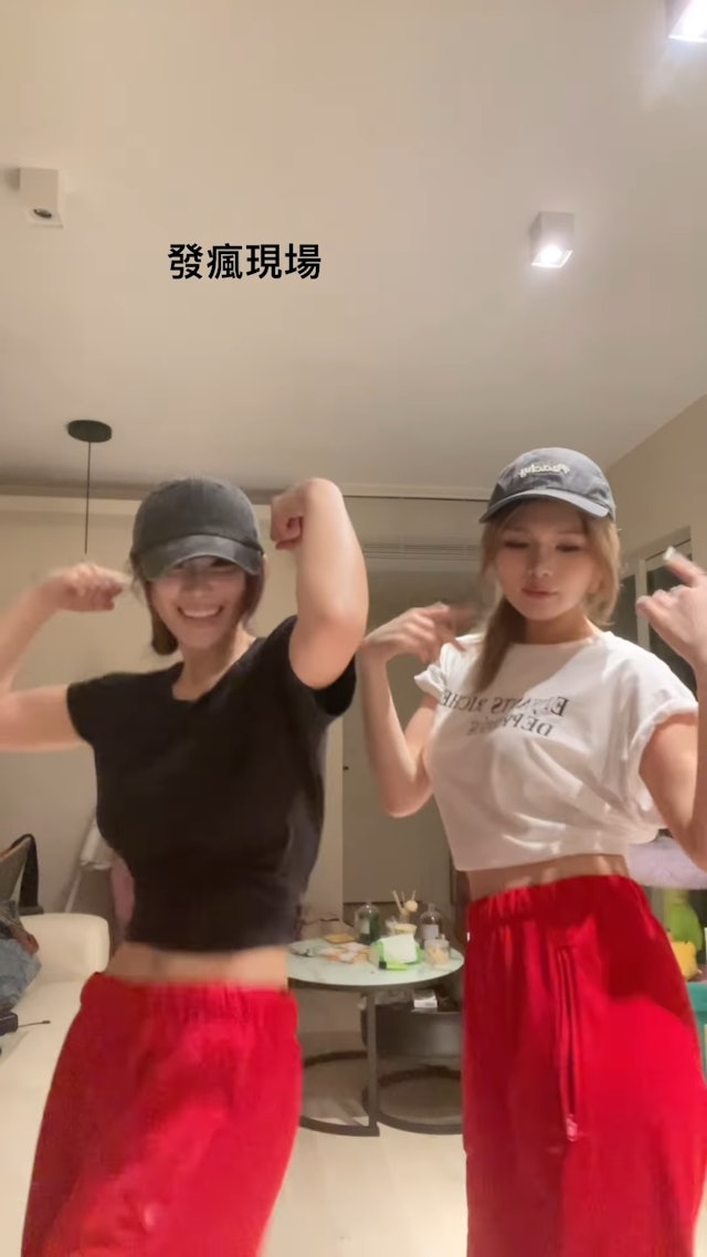 兩位女神看音樂節似乎意猶未盡,隔日又相約在家中繼續玩樂,平時少有公開跳舞的Juliana與Michelle更合體大跳熱舞,Juliana在社交平台上載短片寫道:「發瘋現場」,非常搞笑!片中見二人雖然以休閒運動裝上陣,不過二人傲人身材及小蠻腰依然非常搶Fo!隨即她們跟隨音樂興奮起舞,左扭右扭又大跳性感扭臀舞,迷人曲線盡現,也看得出她們跳得非常盡興開心!