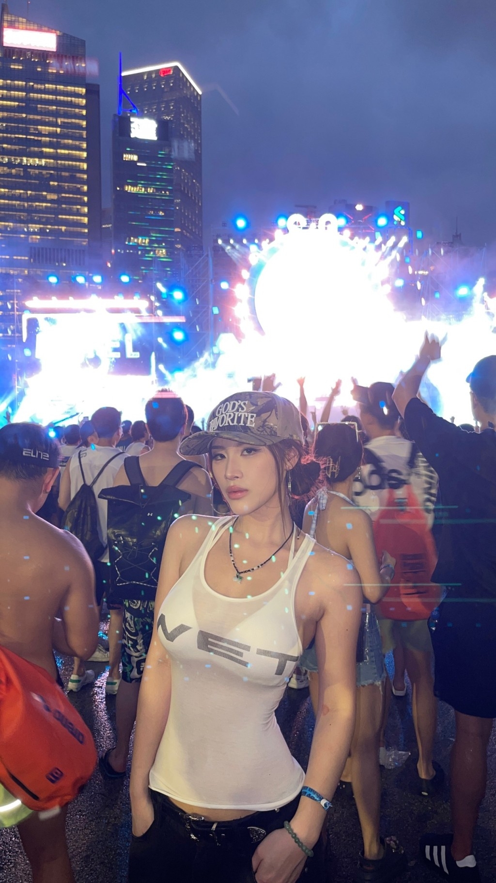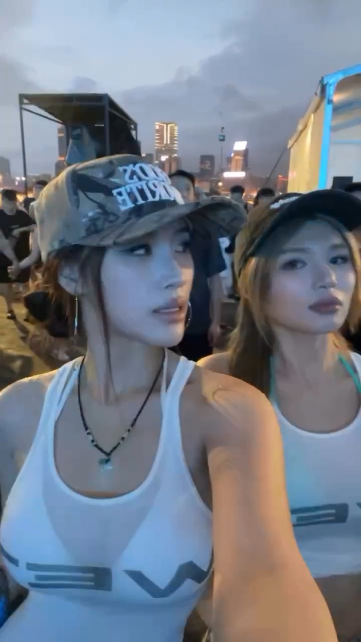 郭珮文(Juliana)與潘明璇(Michelle)上年一同參選港姐競選,雖然最終二人皆三甲不入,私下相當要好成為好姊妹,二人更不時以孖公仔形式合體結伴遊玩。「520」Juliana與同樣身材索爆的好姊妹Michelle大曬甜蜜,以同款貼身白裙上陣鬼馬派心之後,日前(8日),二人又合體一起參加潑水音樂節,再次以姐妹裝示人的她們穿上同樣印有「Wet」字的白色小背心,濕身下內裡的比堅尼若隱若現,火辣身材一覽無遺,極具視覺衝擊!