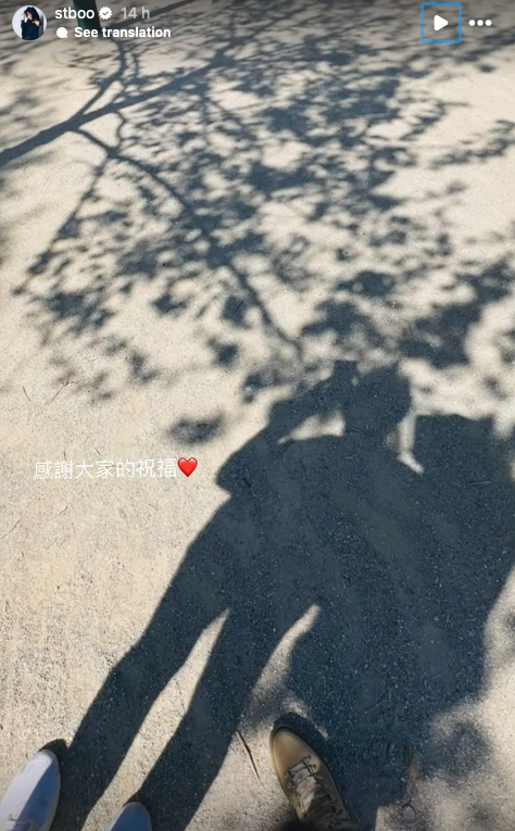 對此,Stephy也十分大方,昨晚(9日)直接在IG限時動態上曬出兩人影子的合照,並寫下:「感謝大家的祝福」,更加上愛心符號,甜蜜認愛,網民也紛紛表示為Stephy開心,認為兩人外型相當般配。![]()